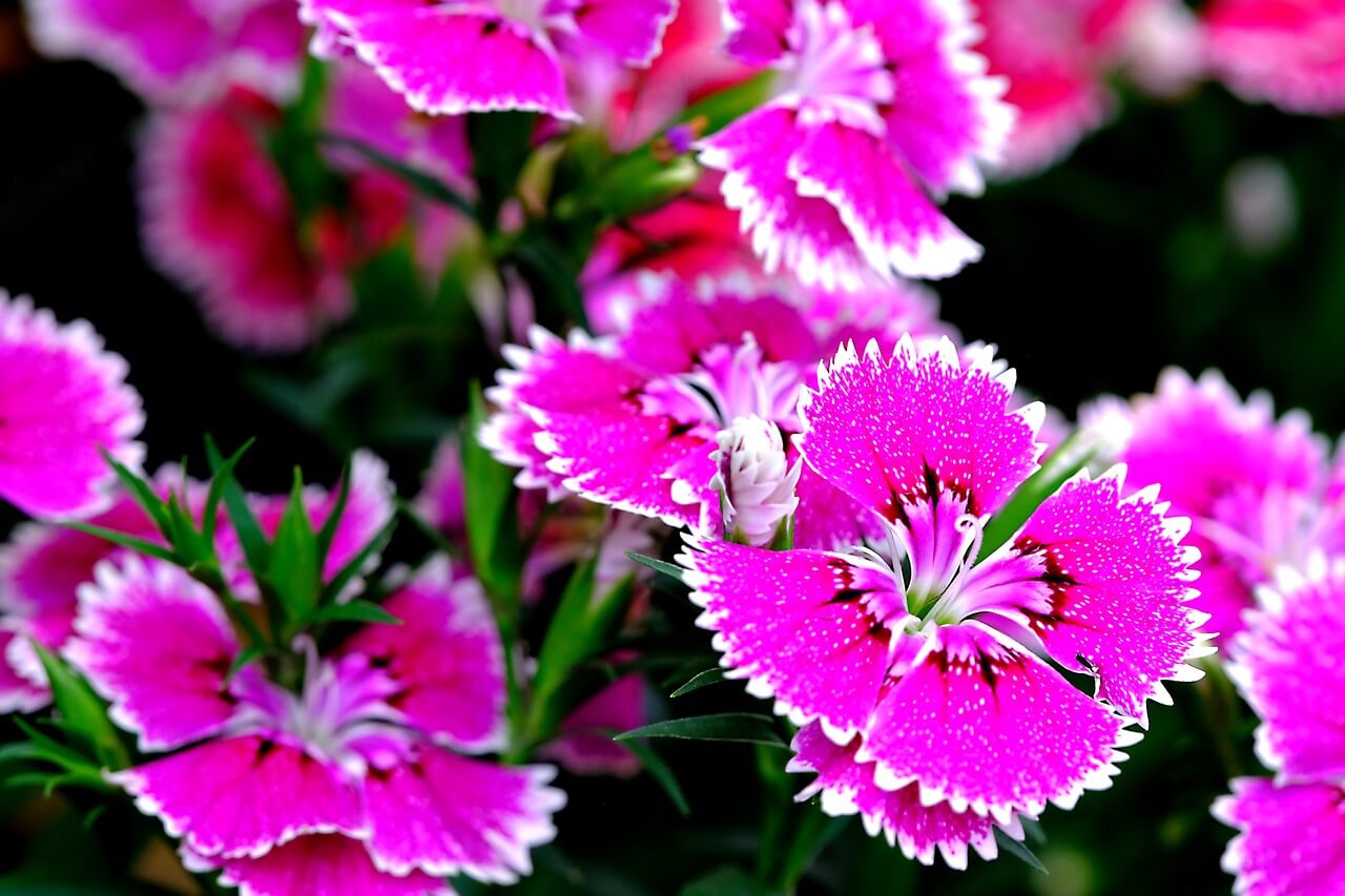 패랭이꽃(Dianthus)은 색상이 다채롭고 향기로운 꽃으로 유명하며 일반적으로 가장자리에 톱니 모양의 요철이 있는 5장의 꽃잎이 있습니다. 꽃은 분홍색, 빨간색, 흰색, 보라색 등 다양한 색상이 있습니다. 일부 품종에는 두 가지 색 또는 줄무늬 꽃잎이 있습니다. 꽃은 일반적으로 가느다란 가지 끝에 하나씩 달리며 줄기는 밑부분에서 클러스터로 배열되어 있습니다.